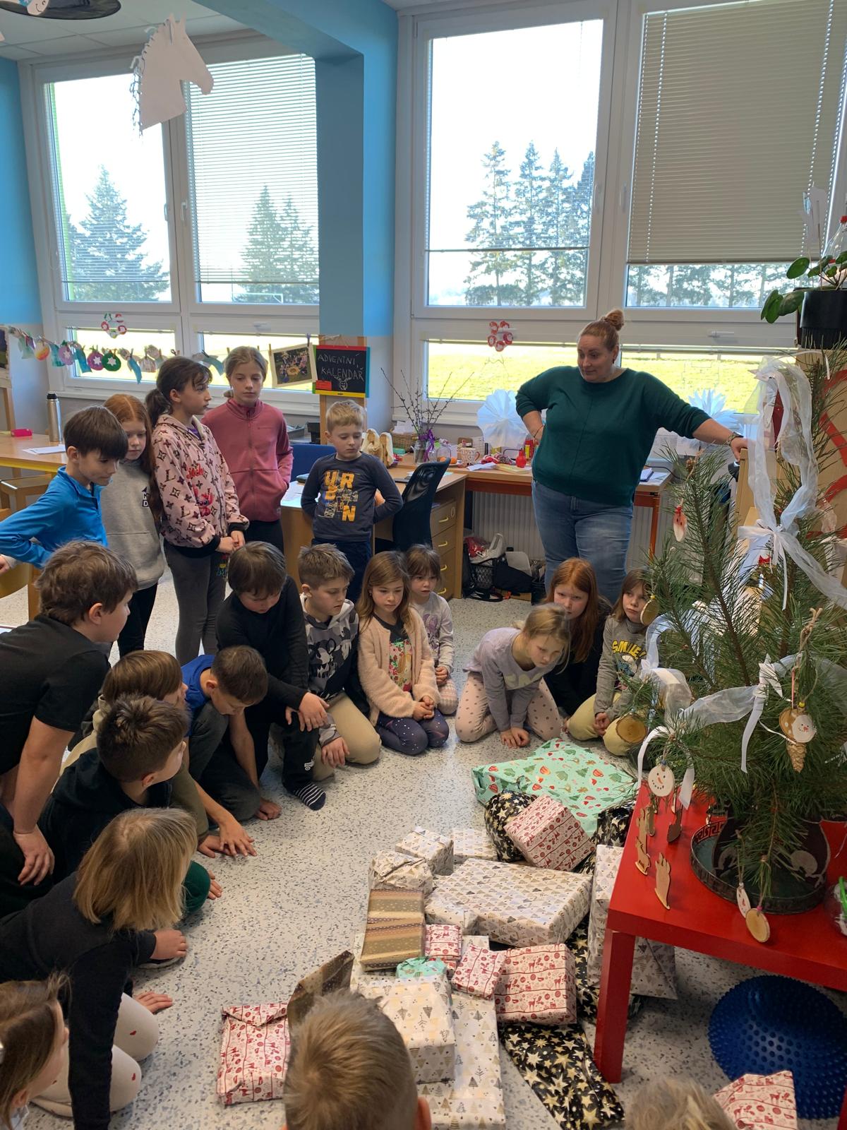 A aby toho nebylo málo, čekalo děti ještě jedno velké překvapení. Pod stromečkem se objevila hromada dárků – nové hry a hračky do družiny, které okamžitě našly své nadšené majitele (alespoň do doby, než museli domů). Předvánoční čas ve školní družině byl zkrátka plný her, radosti, tvoření a odměn.